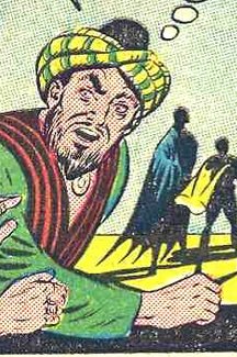 On Earth-2, Professor Carter Nichols sent Batman, Robin back in time to help solve a mystery, when he was unable to retrieve them, he called in Superman to help. Superman managed to peirce the time barrier and found them in tenth-century Baghdad. The giant Abdullah led the notorious Forty Theives and traded a youth named Aladdin as a member of the theives. The time traveling heroes not only helped the lad regain his fortune, which had been swindled from him by Abdullah, but also stopped Abdullahs planned crime wave through a Baghdad Bazaar.