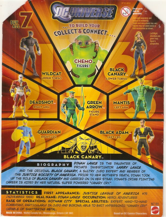 Special Abilities: Expert hand-to-hand combat, particularly in judo and boxing; able to emit hypersonic "Canary Cry" capable of shattering metal
