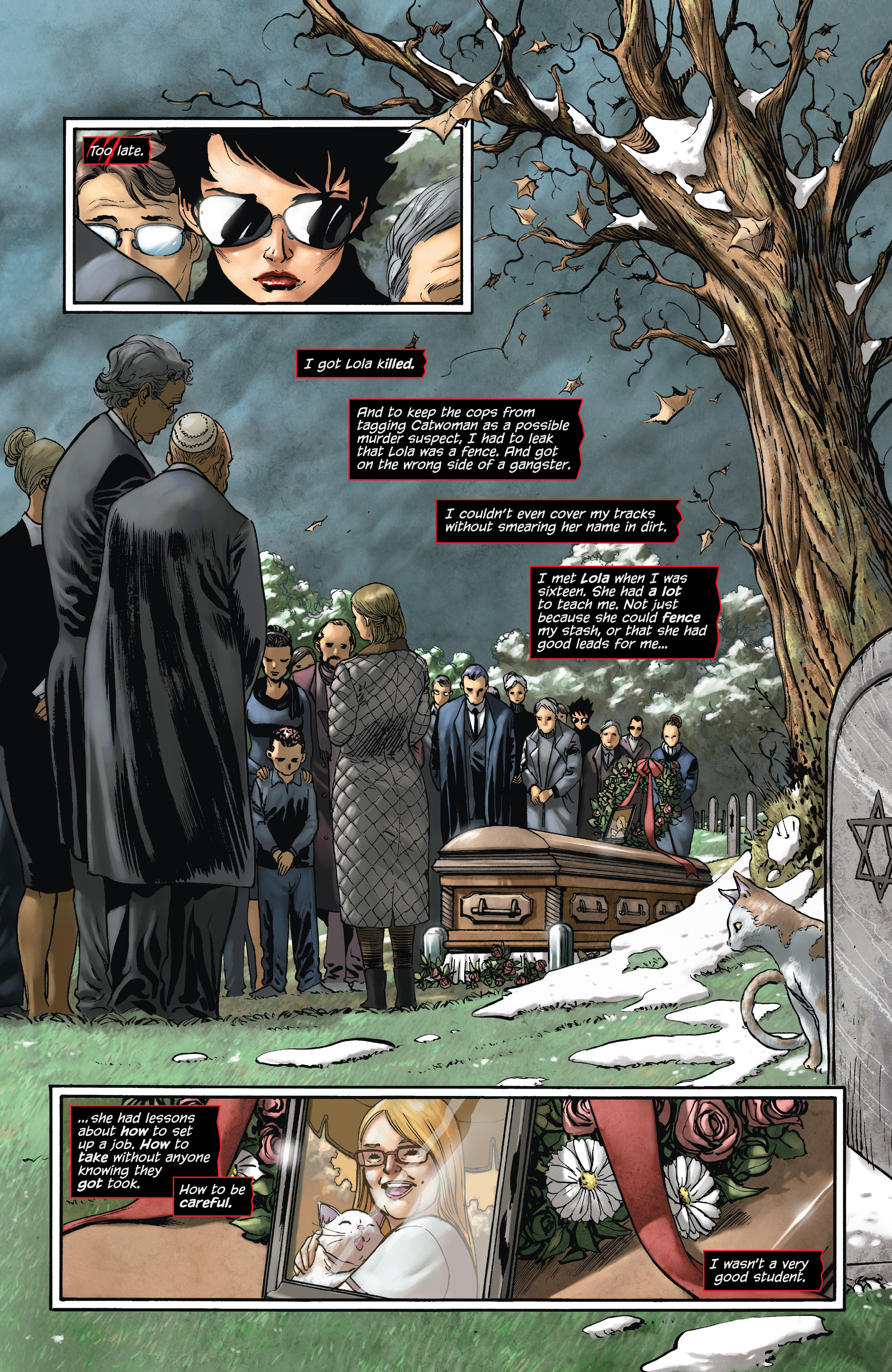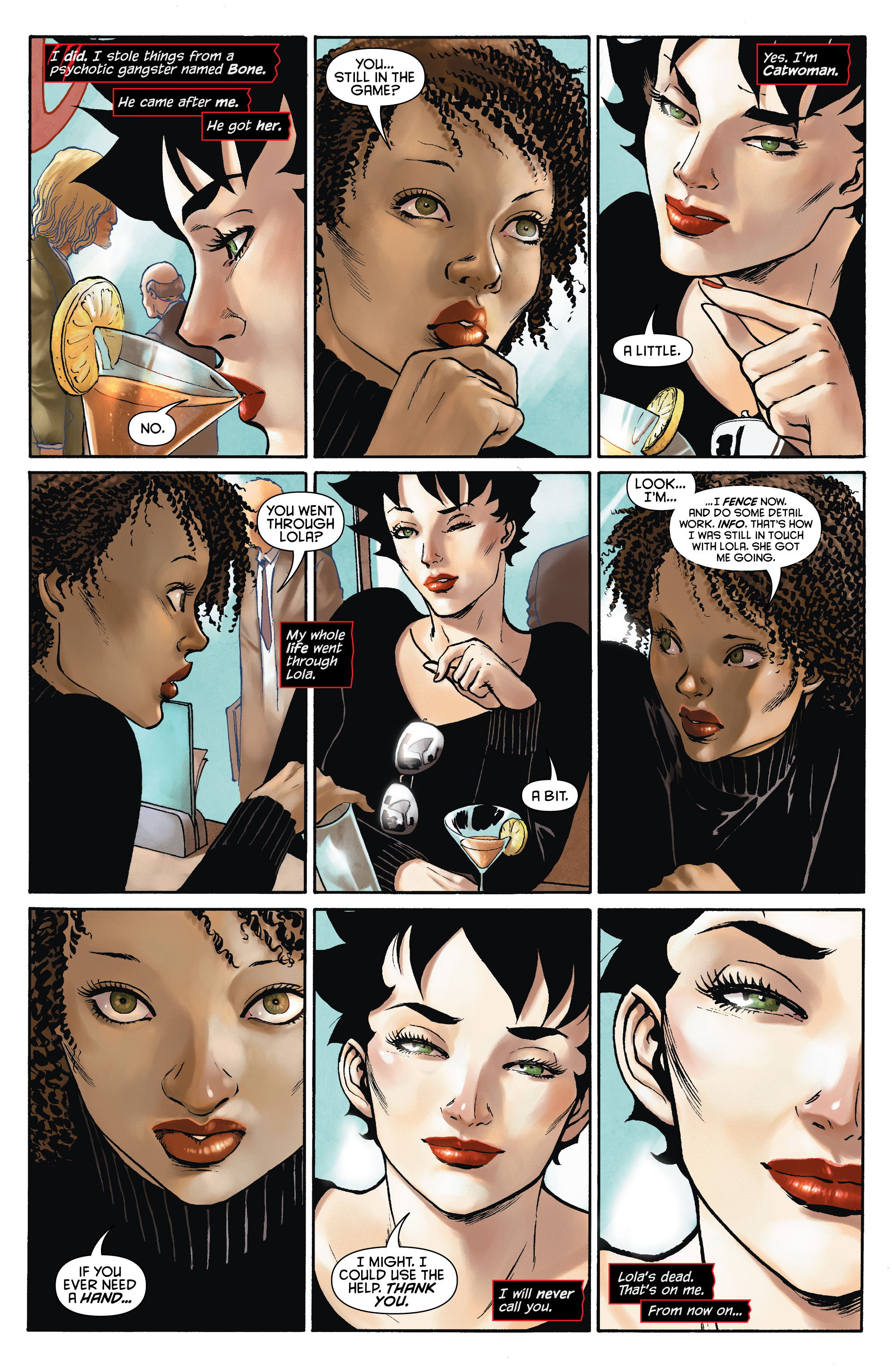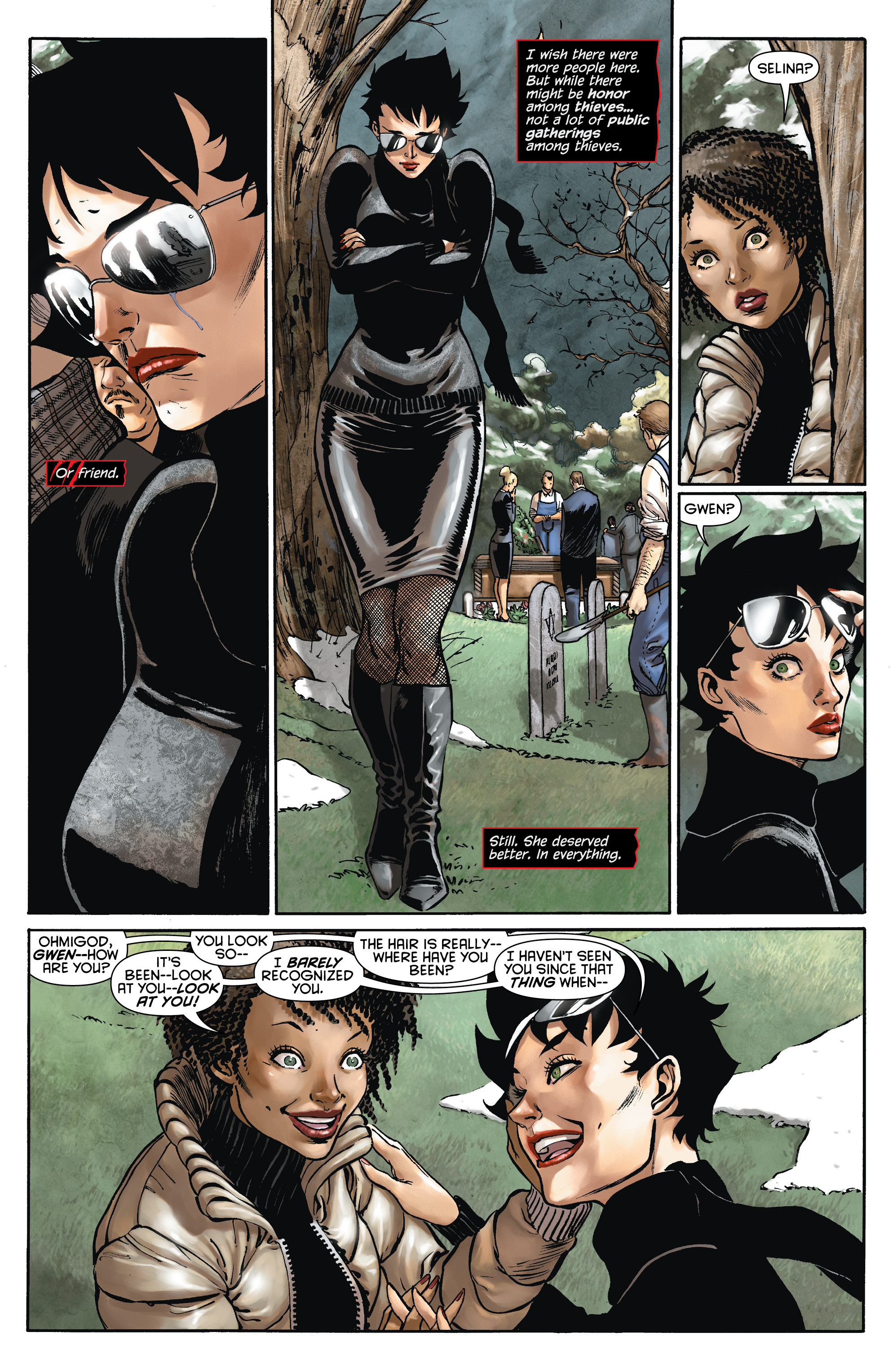 Catwoman pays a call on Wayne Manor, but those who live there prefer that you call first. Then Selina Kyle says goodbye to an old friend, says hello to an older one, and resolves more firmly than ever to strike out on her own. Only one of those things almost gets her killed.