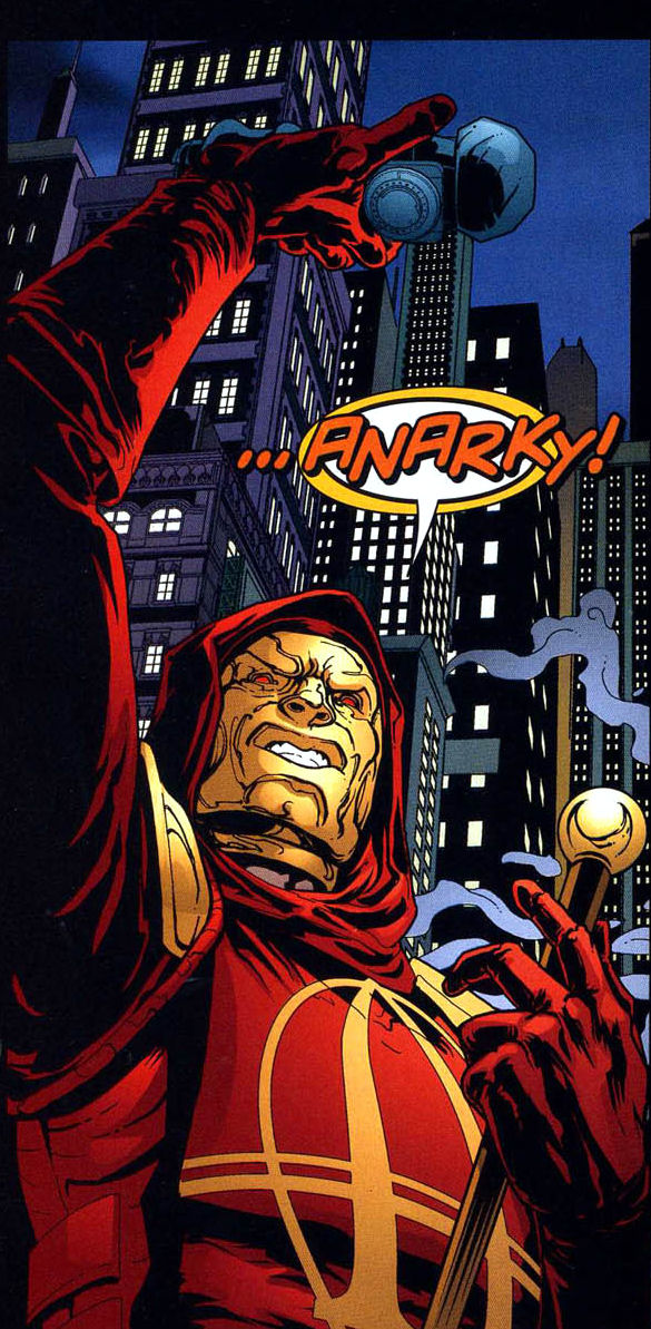 He comes into possession of the Red Robin costume worn by Jason Todd, and uses it as part of a campaign of psychological warfare against Tim Drake. More formidable than ever, he's revealed to be holding Lonnie Machin, an anarchist vigilante, hostage and to have commandeered the latter's identity as "Anarky". Where Machin's approach as Anarky had been to cause social change, Armstrong's approach bordered more on psychotic and meaningless acts of chaos and destruction.