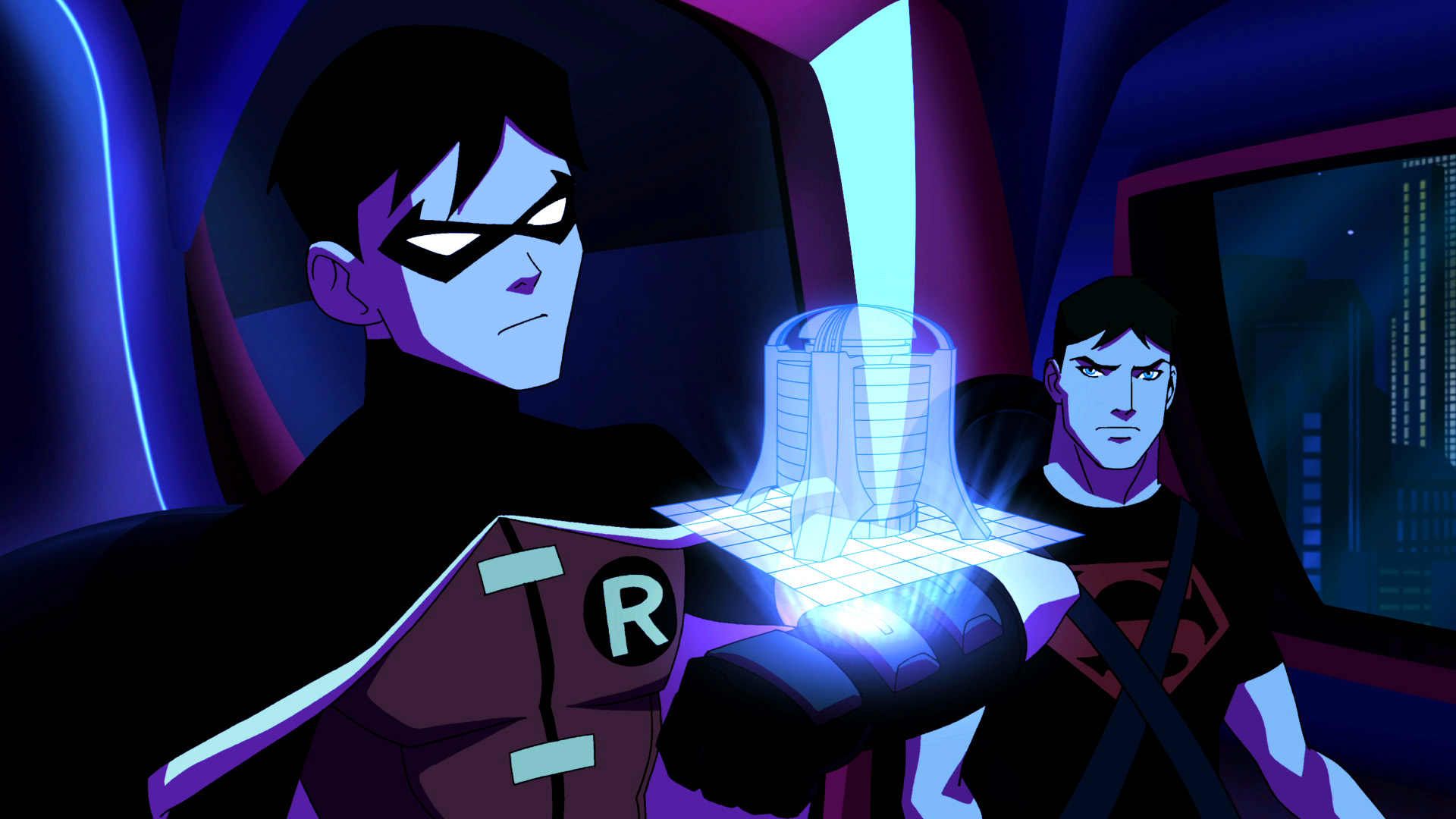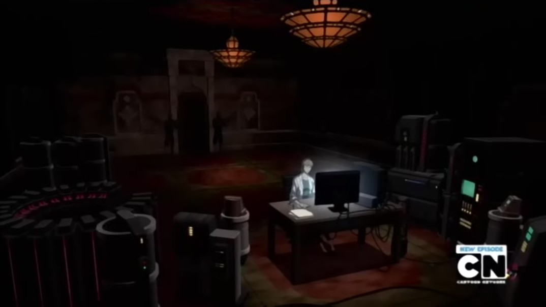 As Robin confirms the program is downloading, Superboy spots the Shadow operatives. He tries to attack them but the agent stuns him with an energy beam and unleashes the Fog. Robin follows it inside and uses his knowledge of the override codes to get inside the building.