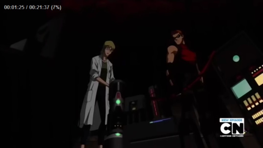 Aqualad goes to the Internet café where Serling is working on the virus. She tells him that she's almost done.