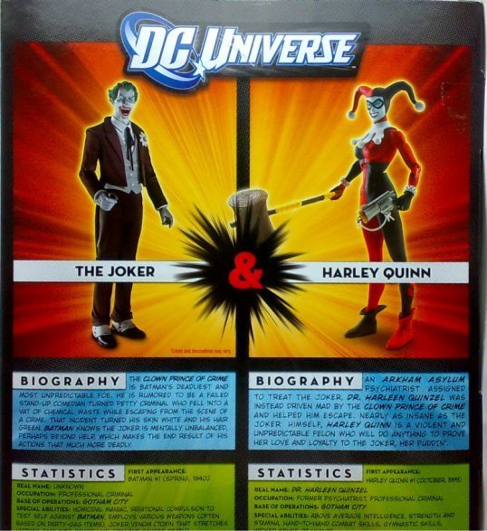 Harley Quinn: An Arkham Asylum psychiatrist assigned to treat The Joker, Dr. Harleen Quinzel was instead driven mad by the Clown Prince of Crime and helped him escape. Nealy as insane as The Joker himself, Harley Quinn is a violent and unpredictable felon who will do anything to prove her love and loyalty to The Joker, her beloved.