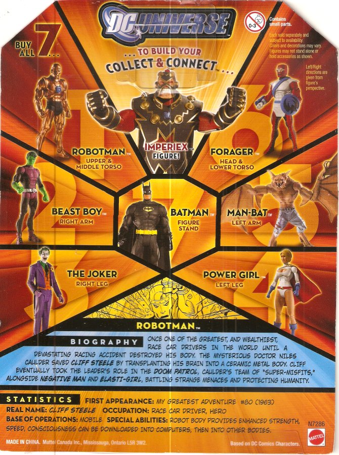 Once one of the greatest, and wealthiest race car drivers in the world until a devasting racing accident destroyed his body. The mysterious Doctor Niles Caulder saved Cliff Steele by transplanting his brain into a ceramic metal body. Cliff eventually took the leader's role in the Doom Patrol, Caulder's team of "super-misfits," alongside Negative Man and Elasti-Girl?, battling strange menaces and protecting humanity.