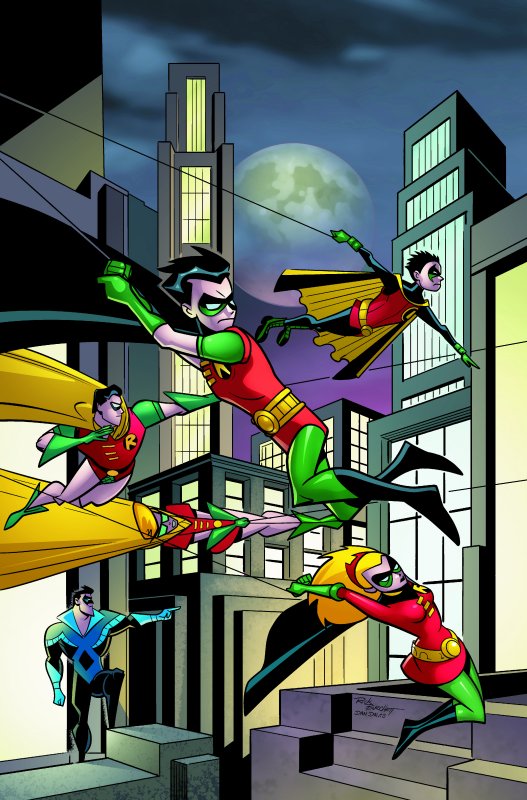 Batman is seriously injured, so it’s up to a whole team of Robins to stop the League of Assassins! How? The Phantom Stranger reaches through space and time to gather everyone who’s ever been “The Boy Wonder,” but will their combined skills be enough?