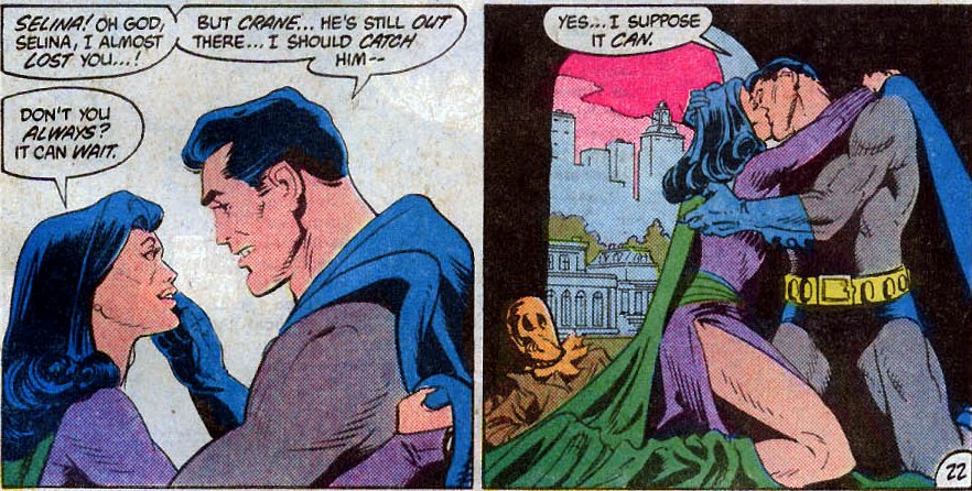 Batman continued to remain active after World War II and the public disbanding of the Justice Society due to the unwillingness of costumed heroes to reveal their secret identities demanded by the Federal Government investigative committee. In the early to mid 1950s Bruce confronted the Scarecrow in a case that caused him to seek out the help of his one time foe Selina Kyle, the Catwoman. Upon a promise of early parole for her, Kyle aided Batman. During the course of this case, the two finally acknowledged their true feelings for each other and Batman revealed his true identity to her. When Selina Kyle was finally released from prison, Bruce Wayne accepted her. The two wed soon thereafter. Selina gave birth to thier daughter, Helena.