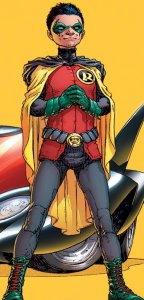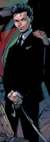 After the death of Bruce Wayne, it appears that Damian is now residing in Gotham, and living under the command of Nightwing (to an extent). Where before Damian portrayed an arrogant and vicious personality, it appears the loss of his father has regressed him to a more child-like mindset, as demonstrated when he takes the Batmobile joy-riding with an older girl. This is discovered by Oracle, who ejects the girl and takes control of the Batmobile, intent on taking Damian home. Unfortunately, the car is sidetracked by Killer Croc and Poison Ivy, who prepare to kill Damian. Damian is saved by Nightwing who ends up being cornered by Black Mask's men, until a murderous Batman appears stating that he is Batman (this is later revealed to be Jason Todd). Damian although shot by Jason Todd recovers, and saves Tim Drake from falling to death inside Jason's Batcave, due to Tim being to injured from a batarang to the chest Damian takes over the mantle of Robin.