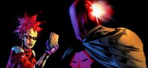 After Dick became Batman, Jason set out to become Dick's direct competition. He reworked his Red Hood identity to be more dramatic and attention-grabbing by creating a costume for it, a costume very similar to the original Red Hood outfit the Joker had used. Also, he stopped dying his hair black and allowed it to grow red again with a small gray streak left by his previous exposure to a Lazarus Pit. To complete his transformation, he even found himself a sidekick. This was Scarlet, the daughter of a criminal and the victim of Professor Pyg's practice of mutilation. His intent was for them to become Gotham City's new dynamic duo, supplanting the old one.