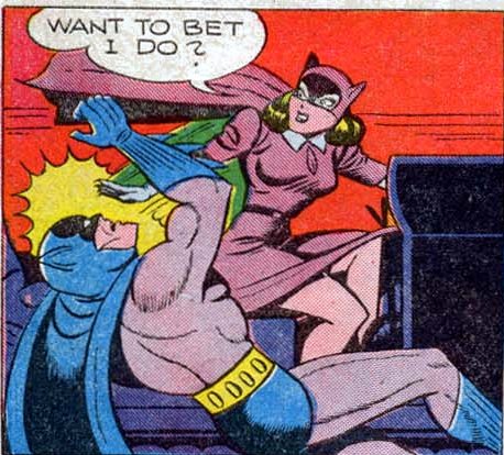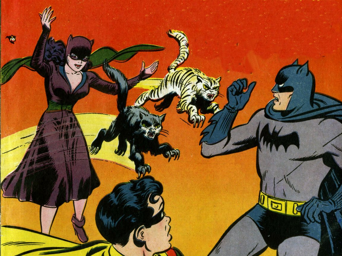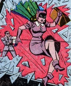 In one of her earliest adventures, the Cat made a play to steal a valuable diamond necklace from a rich heiress named Martha Travers. Several criminal gangs likewise sought the necklace, and the theft earned them the attention of Batman and Robin. Robin was the first to learn about the mysterious Cat and revealed his findings to Batman. Batman encountered the disguised thief, whereupon she attempted to convince him to give up his heroic lifestyle and join her crew. Batman was unwilling to entertain such a notion, but found himself attracted to the seductive thief nonetheless. Even though he captured her, he "allowed" her to escape his clutches.