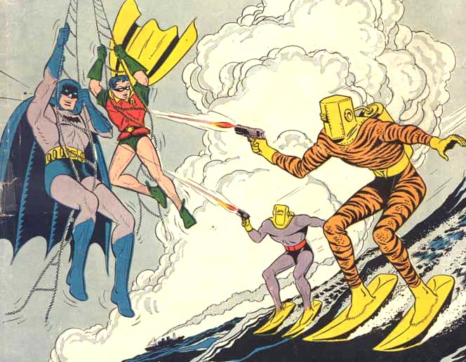 Batman and his crimefighting partner Robin took an interest in Tiger Shark's operations and managed to capture the costumed villain. During the hunt for Tiger Shark, Batman and Robin employ an underwater vessel of their own to help apprehend the criminal: The "sub-batmarine", a special bat-submarine, equipped with grappling hooks, periscope, batarang gun, diving gear, and a net for ensnaring submarines. These devices used by the Sub-Batmarine eventually proved too much for Tiger Shark to escape, and eventually bought about his downfall. Ironically, the "sub-batmarine" Batman and Robin captured Tiger Shark with had been designed especially for their use by Dr. Gaige himself, much to the surprise of both parties after Tiger Shark was unmasked by Batman and his true identity exposed.