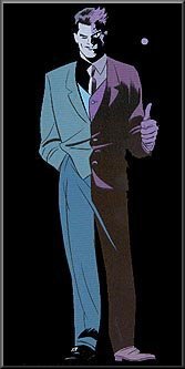 The scarring of half of his face pushed Harvey over the edge. He escaped the hospital and took his father’s old coin. He scarred one side of it, and it became the only way he could act: when he flipped the coin, if the clean side came up, he would do good, if the scarred side came up, he would obey his new persona, Two-Face. Two-Face gathered together the first alliance of Gotham’s freak villains, including the Joker, the Penguin, Catwoman, Scarecrow, Poison Ivy, and Solomon Grundy, and on Halloween night