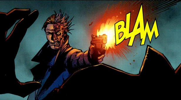 His feelings of uselessness were compounded by a series of mysterious killings that seemed to have been committed by Two-Face; the villains KGBeast, Magpie, The Ventriloquist, and Orca were all shot twice in the head with a double-barrelled pistol, implying that Dent was the perpetrator. When Batman confronted Dent about these deaths, asking Dent to confirm that he was not responsible, Dent refused to give a definite answer regarding his involvement in these deaths. He then detonated a bomb in his apartment and left Batman dazed as he fled.