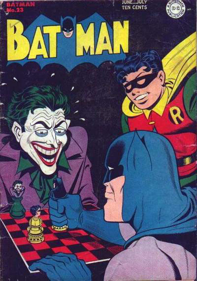 Joker escapes before the police arrive and continues his upside down crimes. Batman deciphers the clues which lead to a party where guests are costumed as movie stars. Joker's gang strikes, but Batman breaks up the robbery, apprehending the Joker again.