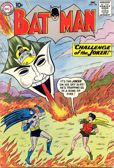 The Joker returns using the legendary four elements: fire,water,earth, and water in his crimes. His first crime uses a giant vacuum to steal some airmail. Then he causes an earthquake to cover his robbery of an amusement park. Next he uses a sky-sled which shoots fireballs to rob the Gotham Fireworks Plant.