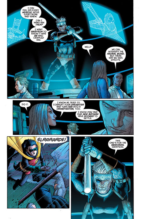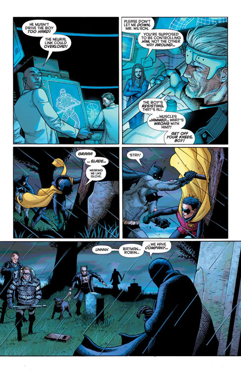 CHARACTERS: Batman (Dick Grayson); Robin (Damian Wayne); Alfred Pennyworth; Gravedigger (Oberon Sexton); Lucius Fox; Duke Zepar; Talia al Ghul