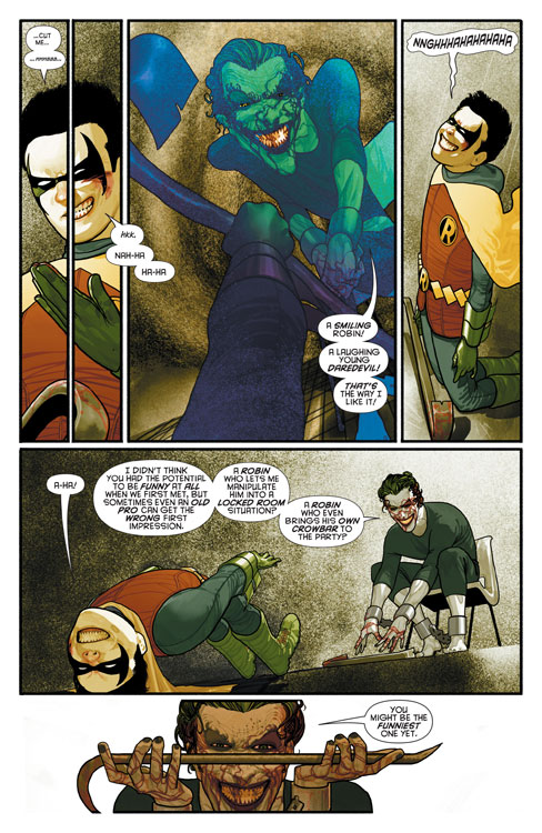 CHARACTERS: Batman (Dick Grayson); Robin (Damian Wayne); Dr. Hurt (Thomas Wayne); Joker; Commissioner James Gordon
