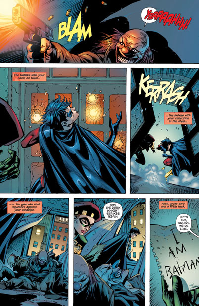 descends upon them in a hail of gunfire proclaiming "I AM BATMAN."