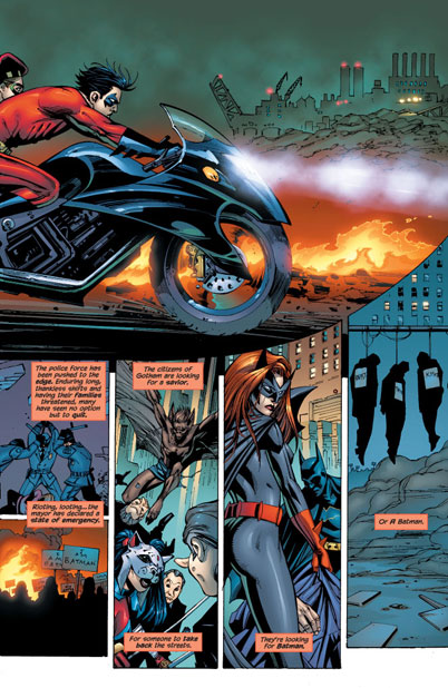quell the violence across Gotham, Dick still refuses to step into the mantle of the Bat, believing that no one could truly replace Bruce and as such, no one should attempt to.