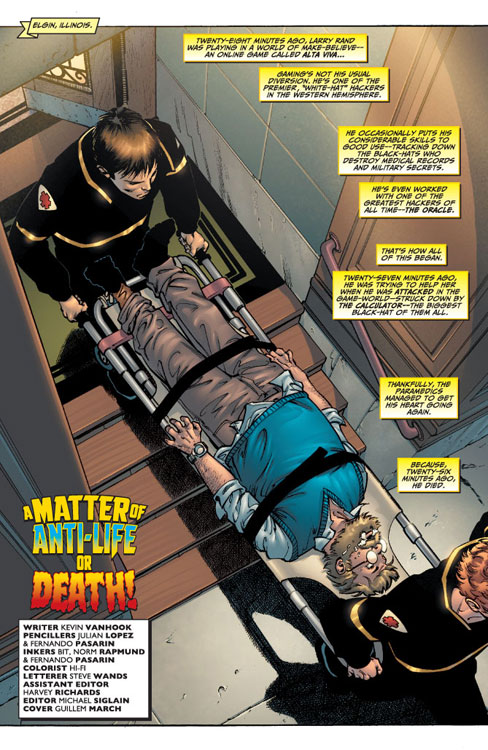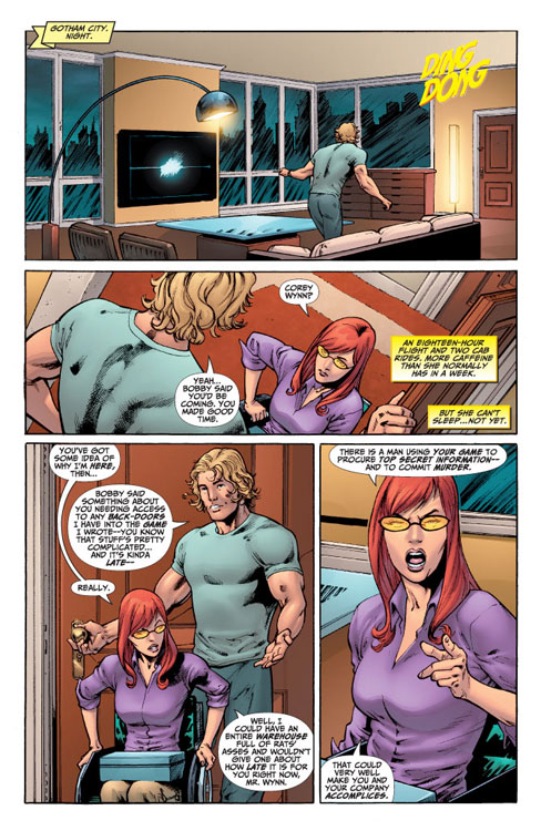Realizing that there is some kind of connection between what happens in the Alta Viva game and what happens in real life, Barbara tracks down the creator of Alta Viva Corey Wynn in Gotham City. His status