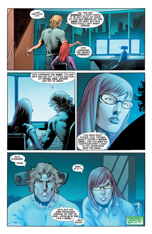 as super-mod allows her access to the root code where she is able to make her way inside of Calculator's little digital fort he's created for himself within the game's system. She