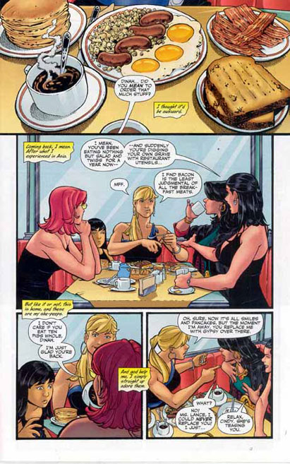 Oracle, learning of the Society's intentions, sends the Birds to Dayton to keep an eye on Alice while she takes some personal time off. The Birds soon realize they're already too late when they find that the Society is already at the Zechlin household. Alice, feeling betrayed by the Birds who wanted to see her locked-up, unleashes a wave of destruction that decimates her front lawn and nearly kills Black Canary!