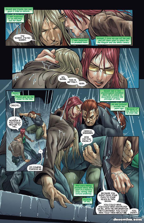 CHARACTERS: Oracle (Barbara Gordon); Black Canary (Dinah Laurel Lance); Huntress (Helena Bertinelli); Lady Blackhawk (Zinda Blake); Hawk (Hank Hall); Dove (Dawn Granger)