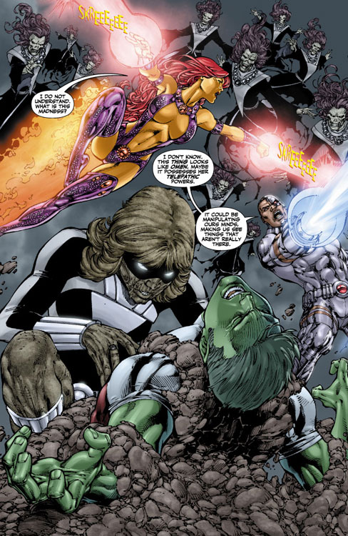 Just as Lilith had retained her powers from beyond the grave, so has Black Lantern Terra. And as Beast Boy continues to resist her advances she has decided to sink the entire Titan's tower into the ground with one cataclysmic earthquake! With Lilith using her mental powers to paralyze Starfire and Cyborg in perpetual dream states, Terra closes in for the kill. But it looks like she's going to have some competition. Black Lantern Tempest and his Atlantean Crew have just arrived and they have a taste for Titan blood as well!