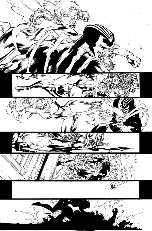 The Toddler sinks his razor sharp teeth into the side of his mother's neck causing her to scream out in pain. It's this scream that alerts nearby Kid Flash and Wonder Girl to race to her rescue. Though it could be too late! The black ooze seems to course through Donna's jugular as her flesh begins to necrotize and her eyes fill with the symbol of the Black Lanterns. As the two Teen Titans look for a way out the entire building suddenly shudders and collapses in on itself trapping them inside with the demonic creatures posing as Terry and Robbie Long. And as hard as it is to believe, things are even worse outside.