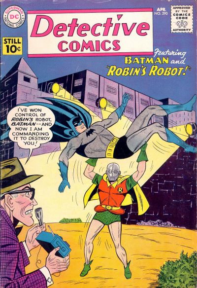 Batman builds a Robin robot that the Boy Wonder can control by remote. It is damaged in the next encounter with "Gadgets" which reveals to the crook that it is not the real Robin.