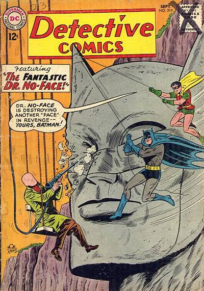 A lab accident causes the face of Dr. Paul Dent to be smoothed over. Driven insane by the shock, Dent begins defacing objects around Gotham including valuable paintings and gems. Batman and Robin eventually catch Dent and take him to an institution. They also deduce that the faceless man is not the real Dent, but criminal Bart Magan. Magan used his insanity story to steal valuable items and cover up the theft. Batman rescues the real Dent and Magan is sent to prison.