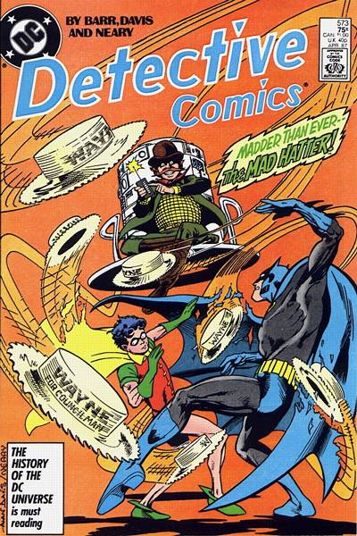 Jervis Tetch was released from prison; the Mad Hatter was quick to make his return to crime. He escaped from Batman and Robin and continued his rampage. Bruce Wayne "threw his hat in" the race for city councilman in order to lure the Hatter out. The ploy worked, but Robin ended up shot and the Hatter escaped.