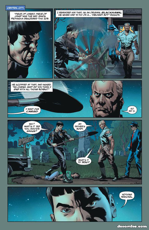 Doc Savage and The Spirit have joined forces at last – but can they beat the secrets behind the death of Doc’s father out of the Blackhawks? The Batman just might be two steps ahead of them all! And in the jungles of South America, it’s getting harder and harder for Rima to keep William Littlejohn alive as the forces of the Golden Tree close in…
