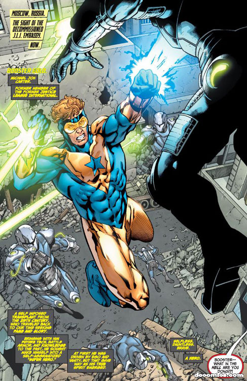 CHARACTERS: Booster Gold (Michael Jon Carter); Fire (Beatriz Corvalho); Ice (Tora Olafsdotter); Captain Atom (Nathaniel Adam); Maxwell Lord; Batman (Dick Grayson); Superman (Clark Kent); Wonder Woman (Diana Prince)