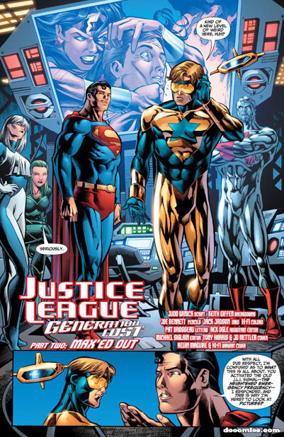CHARACTERS: Booster Gold (Michael Jon Carter); Fire (Beatriz Corvalho); Ice (Tora Olafsdotter); Captain Atom (Nathaniel Adam); Maxwell Lord; Superman (Clark Kent)