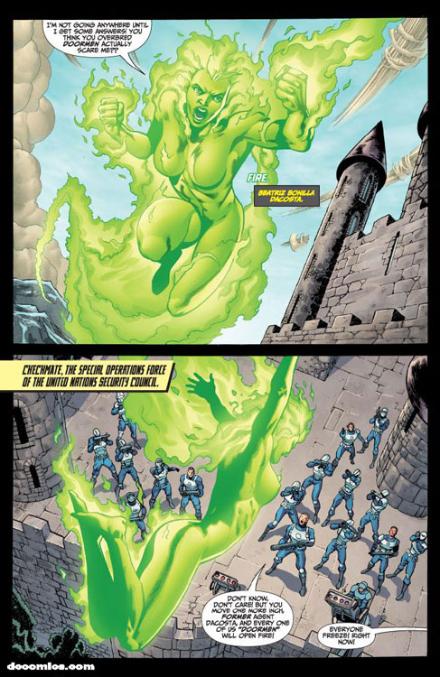 CHARACTERS: Booster Gold (Michael Jon Carter); Fire (Beatriz Corvalho); Ice (Tora Olafsdotter); Captain Atom (Nathaniel Adam); Maxwell Lord; Colonel Taleb Beni Khalid; Blue Beetle (Jaime Reyes)