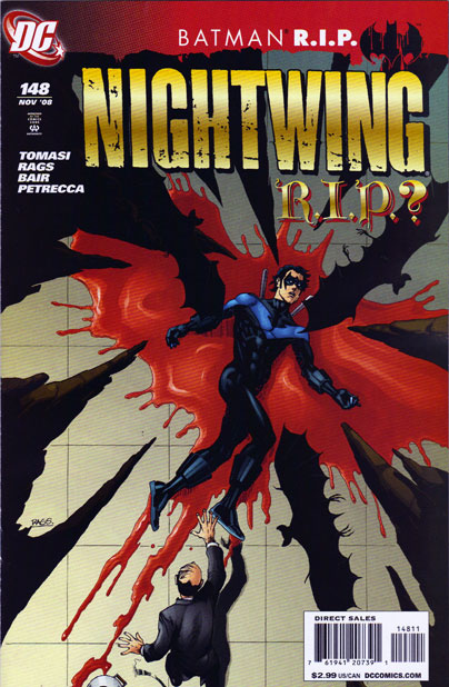 The theme of this issue's cover is reminiscent of the cover to Nightwing #99
