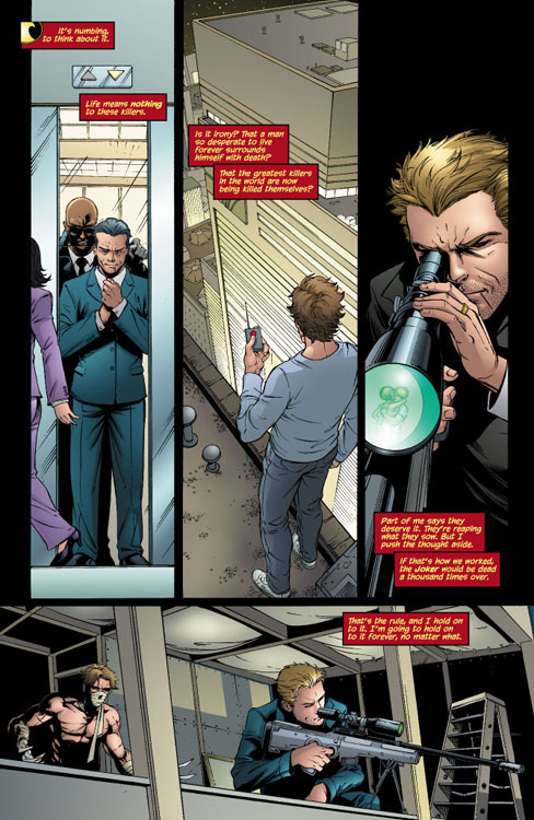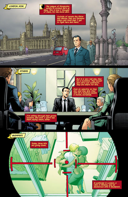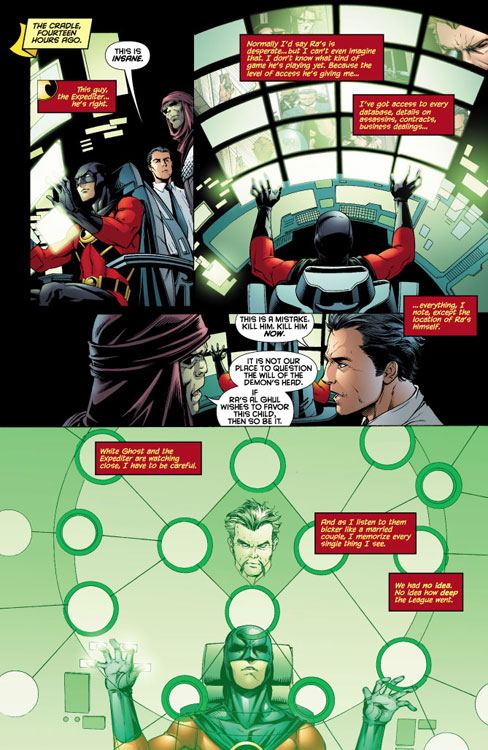 Assassins. From a computer deep inside the League's Cradle, Tim begins pouring over information. Everything is at his fingertips (everything that is, except the location of Ra's al Ghul himself). It's astounding just how deep the League goes and just how much it operates like any other business. And despite the fact that the White Ghost and the Expediter are none too pleased about his access, there's nothing they can do about it. It is the orders of the Demons Head himself. Ra's al Ghul wants these killers found and he expects Tim to do it.