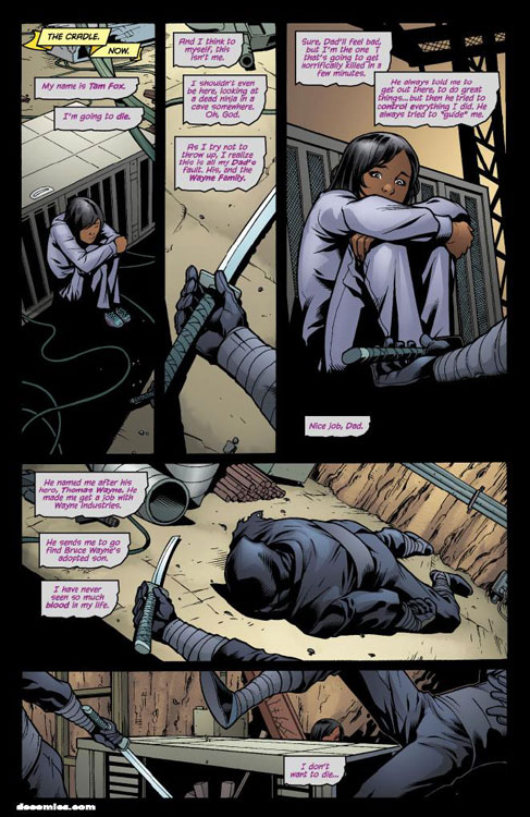 Tam Fox versus the Council of Spiders! Red Robin and the White Ghost have been tricked, and now only Lucius Fox's daughter is left to defend the League of Assassins! Using her Ivy League education and sorority house training, Tam Fox faces off against two of the most lethal killers on the planet...Goliath and Sac! Can she defeat these villains and save Ra's al Ghul without Red Robin by her side? Most definitely not!