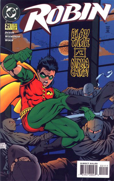 Tim Drake has some explaining to do when Mrs McIlvain discovers Ariana in his bed - but as he slept in the spare room, and Dana is in the house, it's his father who ends up blushing... Robin later gets on the trail of a gang of ninja kid thieves, and surmising that they are being trained and recruited at a ninja camp, he gets himself sent off there.