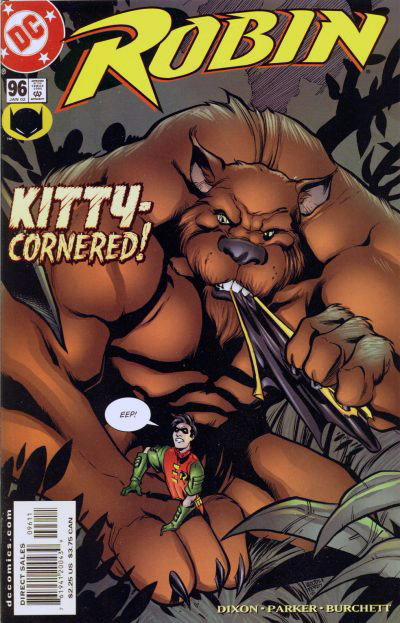 Sheriff Smith and Deputy Chambers discover some nasty animal mutilations, and are concerned that humans might be attacked next. Blue Beetle and Robin also discover the 'crime' scene, and set out in pursuit, soon informed by Oracle that the culprit is most likely Tezcatlipoca. They track him to Myrddin Tower, a large apartment block, and discover building superintendent Bridgette Clancy running scared from the man-jaguar. They fight both Tezcat and his lover Panara, with Clancy's help, and administer the anti-Joker serum, though the two cats get away. During the excitement, it appears that Clancy and Beetle fall for each other.