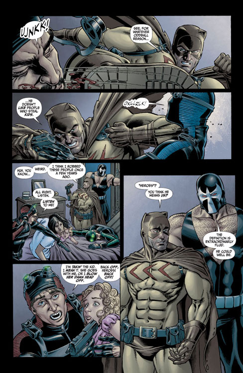 They don't ask for money - well, except for maybe Ragdoll who (while dressed hilariously as the "He/She Wonder") makes a point to steal at least one antique from a family's home on the way out. Instead, Bane makes it clear to the families whose children he rescues that they are doing this in honor of the Bat. And if anyone should be thanked - it's him.