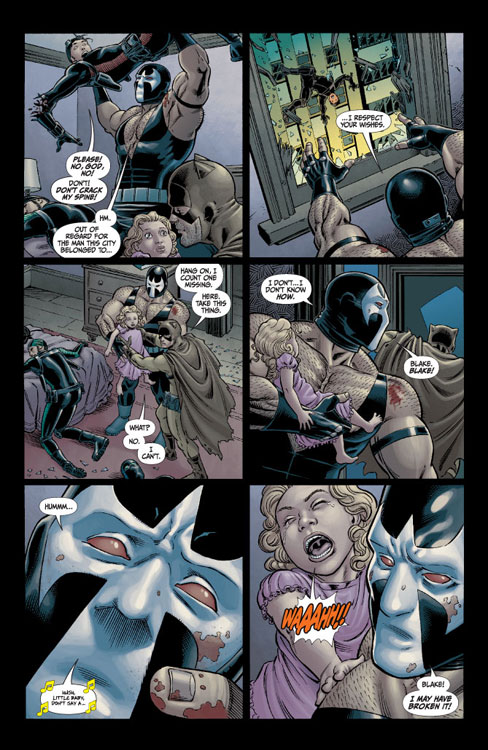 similar likeness, Thomas Blake can never seem to get past his obvious contempt for the arrogant "heroes" who hold their more efficient techniques with such low regard. Techniques which are on full display as the three kill and maim their way through the terrorist regime and rescue the children across Gotham.