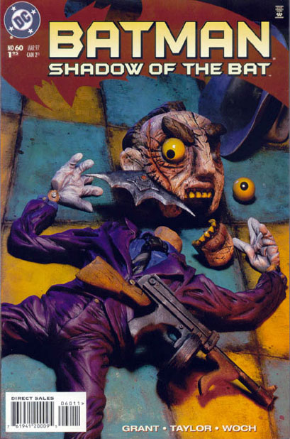 distracted by Scarface and company who are about to kill an old man, who is trying to save the bird. The Batman defeats the Killer and considers using the Killers rifle to shoot the Ventriloquist. Instead he throws a batarang at Scarface. The dummy falls into the river and the Ventriloquist follows him. The Batman captures Rhino and Killer Killer.