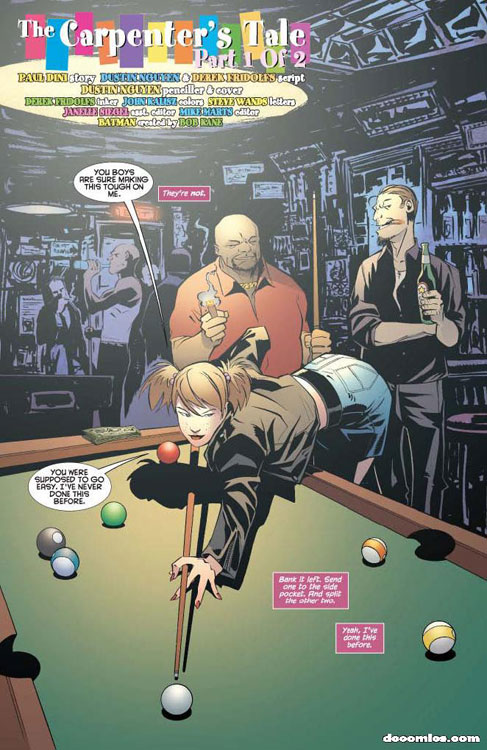 CHARACTERS: Batman (Dick Grayson); Robin (Damian Wayne); Carpenter (Jenna Duffy)