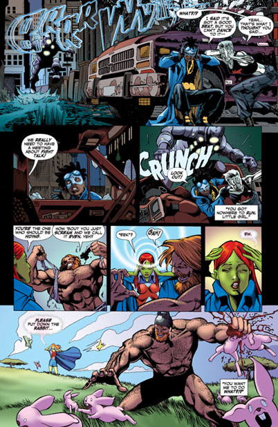 CHARACTERS: Wonder Girl (Cassie Sandsmark); Blue Beetle (Jamie Reyes); Kid Eternity; Miss Martian (M'gann M'orzz); Red Devil (Eddie Bloomberg); Static (Virgil Hawkins); Aquagirl (Lorena Marquez); Bombshell (Amy Sue Allen); Calculator (Noah Kuttler); Traci 13; Mammoth (Baran Flinders); Shimmer(Selinda Flinders); Jinx; Nano (Virgil Adams); Rumble; Geiger