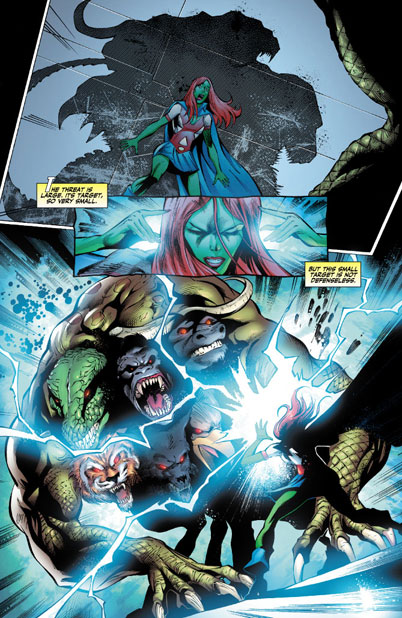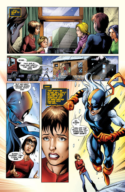 CHARACTERS: Wonder Girl (Cassie Sandsmark); Blue Beetle (Jamie Reyes); Miss Martian (M'gann M'orzz); Static (Virgil Hawkins); Aquagirl (Lorena Marquez); Bombshell (Amy Sue Allen); Raven; Beast Boy (Gar Logan); Cyborg (Vic Stone); Starfire (Koriand'r); Red Arrow (Roy Harper); Dr. Mid-Nite (Pieter Cross)