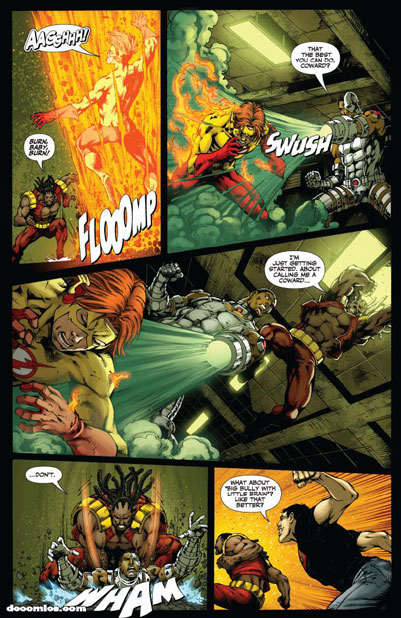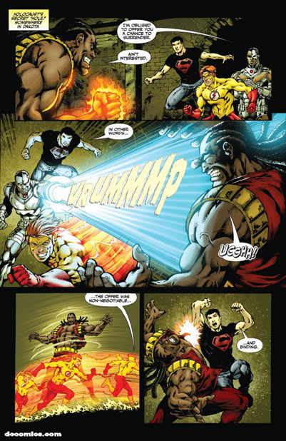 Wonder Girl (Cassie Sandsmark); Superboy (Conner Kent); Kid Flash (Bart Allen); Blue Beetle (Jamie Reyes); Miss Martian (M'gann M'orzz); Static (Virgil Hawkins); Aquagirl (Lorena Marquez); Bombshell (Amy Sue Allen); Raven; Beast Boy (Gar Logan); Cyborg (Vic Stone); Holocaust (Leonard Smalls, Jr.)