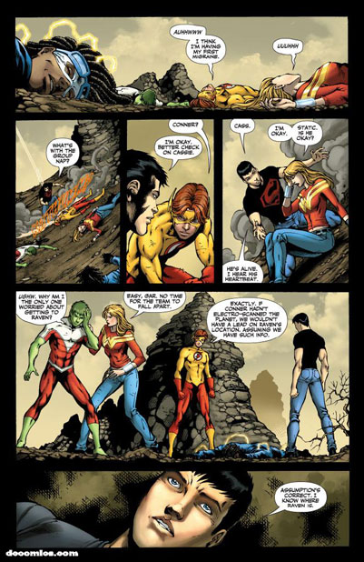 Wonder Girl (Cassie Sandsmark); Superboy (Conner Kent); Kid Flash (Bart Allen); Blue Beetle (Jamie Reyes); Miss Martian (M'gann M'orzz); Static (Virgil Hawkins); Aquagirl (Lorena Marquez); Bombshell (Amy Sue Allen); Raven; Beast Boy (Gar Logan); Cyborg (Vic Stone); Dr. Vincent Barnes; Dr. Rochelle Barnes;