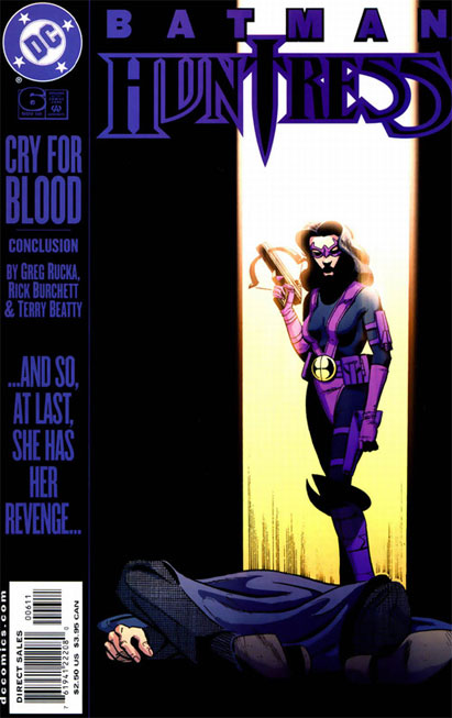 She leaves to find Nightwing waiting for her. Batman's run the DNA. Cassamento is telling the truth. He tells her that Batman trusts her to resolve the situation the right way. "Thanks for nothing," Huntress says as she swings away.
