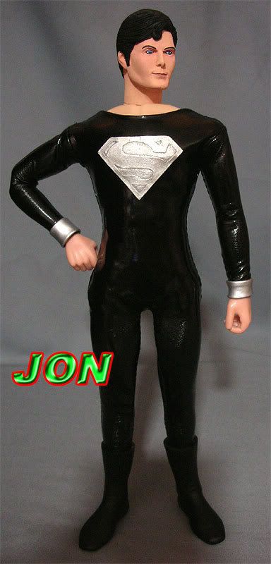 Hi, guys. This is another version of Christopher Reeves superman in Kryptonian Life Suit. The embossed chest emblem is also made of rubber coated with acrylic finishing. Shoes are sculpted based on my imagination. Both head and shoes are casted in polyurethane resin. Suit is made of wet vinyl latex. Hope u all will like it too! Fyi, it's also available in Ebay auction now!!!